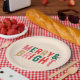 Moderne farbenfrohe Pinks, Rot, Grün und Gold Merry & Bright Papier Teller machen Ihren Aufenthalt zu einem festlichen Erlebnis.