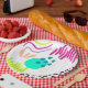 Moderne, farbenfrohe abstrakte Muster. Pappteller
