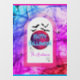 Glückliche Halloween-Typografie mit Fledermäusen und Spinnennetzen auf einem roten Vollmond mit einem Bogen in kunstvoll farbigen Rosa-, lila- und Blautönen. Lege deinen Familiennamen und erschrecke alle auf Halloween-Saison oder lösche ihn!