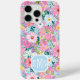 Passen Sie diesen wunderschönen modernen, farbenfrohen Blumengarten aus rosa, blauen, violetten und gelben Blumen für das iPhone 15 Pro Max mit Ihren Initialen in einer modernen CAP-Schrift in Weiß auf Blau an. Es ist so lebendig und fröhlich!