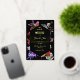 Das exquisite Blumenkartendesign mit einer lebhaften und abwechslungsreichen Farbpalette verbindet sich mühelos mit dem geometrischen Rahmen. Diese Karte mit einem anmutigen Flügelelement verkörpert Eleganz und Eleganz, ergänzt durch einen Schriftart, der Eleganz und Charme ausstrahlt.