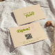 Eine einfache und elegante Kalligraphie farbenfrohe Retro-Hochzeitskarte rsvp. Das hat einen Vintagen, modernen, einzigartigen Pachy-Hintergrund mit rosa und grüner Schrift und handgezeichnetem Küssen am Hochzeitstag. Minimalistisch und elegant mit handgeschriebener Schrift und anpassbarem QR-Code. Sie können alle editierbar sein, indem Sie auf die Schaltfläche Personalisieren klicken.