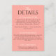 Einfache und stilvolle Retro farbenfrohe Hochzeitsgast Infodetails. Mit funky blassrosa Hintergrund und beige weiß, milchig und weiß. Alle Informationen sind als Website, Transport, Unterkunft anpassbar. Genießen Sie es zusammen mit anderen Produkten aus dieser stilvollen, handgefertigten Retro-Hochzeitssuite.