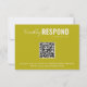 Eine einfache und elegante Kalligraphie farbenfrohe Retro-Hochzeitskarte rsvp. Das hat einen Vintagen, modernen grünen Hintergrund mit weißem Skript und handgeschriebenen, skurrilen stylischen Worten. Und anpassbarer QR-Code für Ihre Einladungen zum UAWG online. Minimalistisch und elegant mit handgeschriebener Schrift. Sie können alle editierbar sein, indem Sie auf die Schaltfläche Personalisieren klicken.