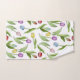 Das Produktdesign zeichnet sich durch farbenfrohe Tulpenmuster in lila, roten, rosa, blauen und gelben Blume aus. Diese botanische Abbildung macht elegante, moderne und einzigartige Badetücher.