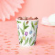 Das Produktdesign zeichnet sich durch farbenfrohe Tulpenmuster in lila, roten, rosa, blauen und gelben Blume aus. Diese botanische Abbildung macht moderne und einzigartige Papiertassen für ihren Geburtstag, Ostern, Muttertag oder Hochzeitsfeier.
