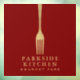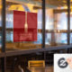 Moderne Fauxgold-Gabel Restaurant-Logo auf Rot Fensteraufkleber