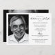 Diese moderne Feier des Lebens ist ein zeitloser Weg, eine Gedenkfeier oder Beerdigung mit Anmut und Würde anzukündigen. Es wurde mit einem sauberen Layout und einer raffinierten Typografie gestaltet und verbindet Eleganz mit herzlicher Einfachheit. Es ist eine wohlüberlegte Wahl, um die Erinnerung eines geliebten Menschen zu ehren. Die Vorderseite der Karte bietet genügend Platz, um mit den wesentlichen Ereignissen individuell zu gestalten, während der minimalistische Stil sicherstellt, dass der Fokus auf den Informationen, die am wichtigsten sind, bleibt. Auf der Rückseite des Hotels befindet sich ein großes Foto, das perfekt für ein Lieblingsportrait geeignet ist, und der Name und die Daten des Lebens Ihres Lieben, sodass Familie und Freunde einen bleibenden Sake lieben können. Mit seinem klassischen Schwarz-Weiß-Design ist diese Einladung vielseitig und für jede Art von Service geeignet, von formalen Erinnerungen bis hin zu intimen Ansammlungen. Es ist vollständig anpassbar und erlaubt Ihnen, Schriftart, Farben und Formulierungen so anzupassen, dass sie die Persönlichkeit und das Vermächtnis Ihres Liebsten widerspiegeln.