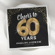 Elegante Servietten zum sechzigsten Geburtstag mit einem stilvollen schwarzen Hintergrund, der in jede Farbe verändert werden kann, funkelnd Glitzer, das Sprichwort "jubelt bis 60 Jahre" mit sechzig goldenen Helliumballons, ihren Namen und das Datum der Feier.
