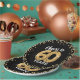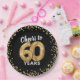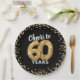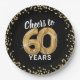 Elegante 60-jährige Teller mit einem stilvollen schwarzen Hintergrund, der in jede Farbe, Gold funkelnd Glitzer und das Sprichwort "jubelt bis 60 Jahre" mit sechzig goldenen Helliumballons geändert werden kann.