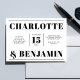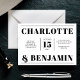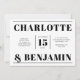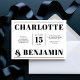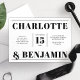 Mit dieser kühnen und modernen, schwarz-weißen Hochzeitseinladung machen Sie einen beeindruckenden Eindruck. Das horizontale Layout zeichnet sich durch ein sauberes und minimalistisches Design aus und zeigt elegante Typografie und zeitlose Details. Ideal für zeitgenössische Hochzeiten, vermittelt diese Einladung Raffinesse und Stil und bewahrt dabei eine klassische Ästhetik. Ideal für Paare, die einen schicken und unvergesslichen Weg suchen, um die Gäste zu ihrem besonderen Tag einzuladen.
