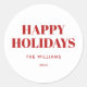 Moderne Aufkleber in Rot und Weiß für Weihnachtskarten Umschlag Aufkleber und Geschenkverpackungen. Verfügt über glückliche Ferien oder Ihren eigenen Text in einfacher minimalistischer Typografie.