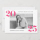 Wir laden Sie ein zu Ihrer Abschlussfeier mit unseren modernen, mutigen 2025 Graduiertenfeiern. Die stilvolle Graduierungsparty lädt zur Ausstellung des horizontalen Fotos des Absolventen gerahmt in Weiß ein, 2025 in heißen rosa, modernen Schriften an den oberen links und unteren rechten Ecken. Personalisieren Sie die Front der Einladungen durch Hinzufügen des Graduiertennamens und des Schulnamens. Die Einladung kehrt sich um, um Ihre Party-Details in Weiß vor einem massiven heiß rosa Hintergrund anzuzeigen.