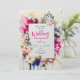Diese Hochzeitskarte "Save the Date" zeichnet sich durch ein lebendiges, künstlerisches Design mit moderner Aquarellästhetik aus. Der Hintergrund zeigt fette, ausdrucksstarke Pinselstriche in Rosa, Blau und lila, kombiniert mit zarten Spritzern, um eine abstrakte und lebendige Komposition zu schaffen. Der Haupttext ist von eleganten Blumenelementen umgeben, darunter Rose, Pfannkuchen und Knospen in weichen Rosa, Weiß und Blues, die eine Touch von Romantik und natürlicher Schönheit hinzufügen. Die Typografie gleicht klassische und zeitgenössische Stile aus, wobei "Hochzeit" in einem spielerischen Drehbuch hervorgehoben wird, während die Details der Veranstaltung einen eher klassischen Serif-Schriftart verwenden. Alles in allem vermittelt das Design ein frisches, skurriles Ambiente, das perfekt für ein Paar ist, das mit seinem Hochzeitsgeschirr eine Erklärung abgeben möchte. Personalisieren Sie den Text bezüglich der Namen und Details der Hochzeit. Sie können die Karte auf Ihr mobiles Gerät oder Ihren Computer herunterladen.