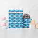 Modernes Design von stilisierten Fischen, abwechselnd positiver und negativer Raum - gemischte Mediengrafik in Aqua-, Türkis- und Tiefseeblau, Akzent mit Schwarz