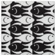 Gewebe des modernen Entwurfs der Mitte des Jahrhunderts der stilisierten Fische, positiven und negativen Raum abwechselnd - gemischte Medien grafisch in klassischem Schwarzweiss