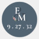 Moderne florale Burgundy Navy Peach Blush Initiale Runder Aufkleber