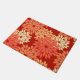 Doormat in einem modernen Akzent auf einem traditionellen japanischen Blumenkimono-Druck - stilisierte Blume in Pastelltönen bis Orange auf einem tiefmandarinen Orangenhintergrund