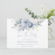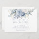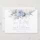 Moderne Florals Dusty Blue Text QR Code Hochzeit. Verfügbar in digitaler Form und gedruckt. Herrliche Blumen in sommerlich hellblau und weiß und ein elegantes Set-Skript in blau für Save the Date. Die Erholung des Textes können Sie einfach mit Ihren Daten personalisieren. Fügen Sie Ihren QR-Code zu Ihrer Hochzeitswebsite auf der Rückseite oder löschen Sie diesen und den Text auf der Rückseite, wenn nicht erforderlich.