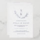 Diese moderne, elegante Silberfolie-Hochzeitseinladung mit einem ausgeklügelten grünen Blätter, das die Kunst der Linie darstellt, ist leicht zu personalisieren. Der Hintergrund ist ein grau rustikales Muster, das Sie verbergen und in die kräftige Farbe Ihres Anzugs Ihre Hochzeitsfarben ändern können.