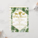 Moderne Foliage Safari Babydusche Einladung Suchen Sie eine moderne Babydusche? Dieses Design ist frisch und weist eine goldene Pinselkalligraphie-Überschrift in Imitat auf. Der Hintergrund ist ein tropisches Blattmuster und eine sechseckige Form mit einem goldenen Imitat und Imitaten Gold Safari oder Dschungeltiere. Dieses Design eignet sich für eine geschlechtsneutrale Babydusche.