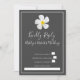 Ein einfaches modernes Design mit symbolischer Blume, weißem Schriftzeichen und einer weißen Kontur auf dunkelgrau. Die Rückseite hat alle Einzelheiten der Hochzeit, personalisieren Sie die Front und zurück zu den Details Ihres besonderen Tages. Ein klassischer Look für eine formelle Angelegenheit. Matching Style auf Brautparty, UAWG, Save the Date und mehr. Die hawaiianische Lei-Blume Plumeria ist ein Symbol für "Neuanfang".