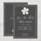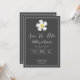 Ein einfaches modernes Design mit symbolischer Blume, weißem Schriftzeichen und einer weißen Kontur auf dunkelgrau. Die Rückseite hat alle Einzelheiten der Hochzeit, personalisieren Sie die Front und zurück zu den Details Ihres besonderen Tages. Ein klassischer Look für eine formelle Angelegenheit. Matching Style auf Brautparty, UAWG, Save the Date und mehr. Die hawaiianische Lei-Blume Plumeria ist ein Symbol für "Neuanfang".