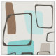 Moderne, inspirierte abstrakte Kunst aus dem 19. Jahrhundert, geometrisches Muster mit gewölbten Quadraten in Braun, Bräune und Türkisblau.