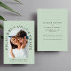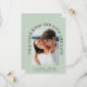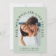 Moderne hellgrüne Hochzeit in Urlaubsort Save the Date Karte mit Ihrem Foto in einem gewölbten Rahmen, "Pack Your Bags And Save the Date" in elegantem Text und Ihren Vornamen, Hochzeitstag und Ort. Auf der Rückseite personalisieren Sie die Save the Date Details in einfacher Typografie.