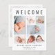 Eine elegante und preisgünstige Geburtsankündigung, um Ihr Neugeborenes Familie und Freunden vorzustellen. Dieses Design zeichnet sich durch "Willkommen" in der obersten Ebene in großen Typografie, eine 7-Foto-Collage und ihren Namen, Geburtsdatum und Geburtsdaten in einfachen modernen Typografie aus. Fügen Sie auf der Rückseite ein weiteres Foto und eine personalisierte Meldung hinzu.