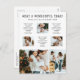 Mit dieser einzigartigen Modern Foto Collage Holiday Postcard können Sie das neue Jahr einführen. Diese trendige Karte beinhaltet "What a Wonderful Year!" in einem stilvollen Vintagen Schriftart für Schreibmaschinen, 5 Fotos der Familie und Text auf der Rückseite für die Personalisierung. Weißer Text auf schwarzem Hintergrund.