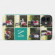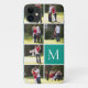Moderne Foto Collage und Monogramm iPhone 11 Fall. Es besteht aus 7 Fotos der Familie und Ihrem Initial/Monogramm auf aquamariner quadratischer Form.