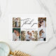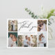 Moderne, elegante Hochzeit danke Karte. Design verfügt über 5 Fotos, Typografie-Skript danke in schwarzer Schrift, Namen, Hochzeitstag auf der Vorderseite. Personalisieren Sie Ihre Nachricht mit der Rückseite weiter.