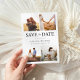 Erstellen Sie Ihre eigene Hochzeit speichern Sie die Datumskarten mit 4 Ihrer Lieblings-Fotos. Modernes typografisches Design mit einfacher 4-Foto-Collage.