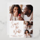 Moderne Hochzeit speichern Sie das Datum Ankündigung Karte. Die Vorderseite zeigt eine Collage von 3 Ihrer Lieblings-Fotos, "Save the Date" geschrieben in einer echten Rose Gold-Folie Drehbuch und Ihre Namen und Hochzeitstag in einfachen Typografie. Auf der Rückseite wird "Save the Date" in einem Imitat Rose Gold-Folie Skript wiederholt, und Sie können ein zusätzliches Foto hinzufügen und Ihre Daten personalisieren.