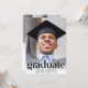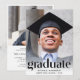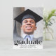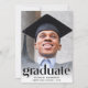 Eine elegante Graduiertenparty, die das Foto des Absolventen mit "Graduate" in trendigen Großbuchstaben und ihren Namen, Schule und Klassenzimmer in einfacher Typografie präsentiert. Fügen Sie auf der Rückseite ein zusätzliches Foto und Ihre Party-Details hinzu.