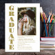 Eine moderne minimalistische Foto-Graduierungsparty in Weiß und Gold.