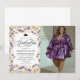 Mit der Einführung unserer modernen Lila Wildblumen Floral Script Foto Graduation Party Einladung, eine stilvolle Feier der Errungenschaft und natürliche Schönheit. Dieses moderne Design mit lebhaften lila Wildblumen und einem modernen Hintergrund verströmt Eleganz und Stil. Set den Ton für eine unvergessliche Abschlussfeier voller Freude, Lachen und den lebhaften Farben des Frühlings Blüten. Egal, ob Sie die Oberschule, die Uni oder darüber hinaus feiern, diese Einladung verleiht Ihrem Event eine Touch von Launen und Charme. Wir ehren die Leistungen des Absolventen und toasten auf ihre strahlende Zukunft, umgeben von der bunten Pracht der Natur.