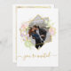 Hochzeitseinladung mit zarten Aquarellfarben-Blume und goldenen Akzenten. Anpassen mit Foto auf der Vorderseite und Details auf der Rückseite