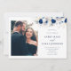Die Moderne Foto Horizon Blauer und Weiße Blütenhochzeit Einladung ist verzaubert mit ihrem markanten Horizont Blau und reinweißem Blumenmotiv gepaart mit ausgefeilter Typografie. Dieses exquisite Design erlaubt es Ihnen, Fotos des Ehepaares hinzuzufügen, die zeitlose Eleganz, die perfekt für eine klassische und luxuriöse Hochzeit. Die anmutigen Details und die harmonischen Farben versprechen einen unvergesslichen Tag.