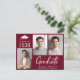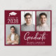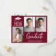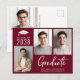Moderne burgundische Klasse von 2025 Graduierungsparty Einladung Postcard mit 3 Fotos, "Graduate" in einer fett-zeitgenössischen weißen Schrift und den Namen, Klassenjahr und High School oder Uni in schlicht weißer Typografie. Fügen Sie auf der Rückseite ein zusätzliches Foto und die Einzelheiten zum Party hinzu.