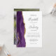 Der links Rand dieser eleganten, modernen Hochzeitseinladung zeichnet sich durch eine lila Aquarellgrenze aus, die mit Imitaten mit goldenem Glitzer bestickt wurde. Der individuell anpassbare Text kombiniert handgeschriebene Holzkohle, Kupferplatte und kursiv Schriftart auf weißem Hintergrund. Ersetzen Sie das Beispielbild auf der Rückseite einfach durch Ihr vertikales Foto.