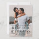 Ein modernes Overlay mit großen Namen und ein volles Foto sind die Merkmale dieser Hochzeitseinladung. Koordinieren Sie die Einladung und den Tag der Dinge mit diesem Design, indem Sie die Modern Overlay Wedding Collection von Stacey Meacham besuchen.