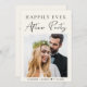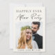 Moderne helle, private Hochzeitsankündigung oder Entdeckungsankündigung und Empfang Einladung, die Ihr Hochzeitsgeschenk Foto "Happily Ever After Party" in einer Mischung aus einfachen Typografie und einem schicken Drehbuch und Ihren Namen und Hochzeitsdatum. Auf der Rückseite personalisieren Sie Ihre Ankündigung und Einladung, geben Sie die URL-Adresse Ihrer Hochzeitswebsite ein, um einen QR-Code für Gäste zu erstellen, um nach allen Details zu scannen und online zu UAWG, und fügen Sie Ihre Namen in einem signaturähnlichen Skript.