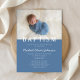 Personalisiertes modernes Foto Religious Cross Blue Boy Taufe Einladung.