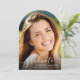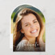 Feiern Sie Ihren Absolvent mit einer eleganten, bogenförmigen Abschlussfeier mit ihrem Foto, das mit "Absolvent" in einem stilvollen weißen Drehbuch mit Swashes und deren Namen, Schule und Klassenzimmer in der modernen weißen Typografie überlagert wird. Fügen Sie ein zweites Foto auf der Rückseite hinzu und personalisieren Sie Ihre Graduiertenparty-Details.
