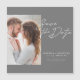 Elegantes und modernes Design mit einem Typografie-Skript Save the Date und Ihrem Lieblings-Foto vor einem gedämpften grauen Hintergrund. Ideal, um Ihre kommende Hochzeit in einer modischen, minimalistischen Art und Weise zu verkünden. Einfache Anpassung wichtiger Details und Ihr bestes Foto der Wahl.