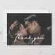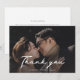 Feiern Sie Ihre Hochzeitsfeier und teilen Sie Ihre Erinnerungen mit unserem personalisierten Foto Dankeschön-Karte. Mit dem Foto Ihres ausgewählten Paares als Herzstück erweckt diese Karte wunderbar den Kern Ihres besonderen Tages. Mit einem eleganten Skript "Danke", das elegant über Ihr Bild positioniert ist, verbindet diese Karte Sentimentalität mit Stil. Ideal, um Freunden und Familie in einer intimen und unvergesslichen Art und Weise zu danken, ist es ein exquisiter Beweis für einen Tag voller Liebe.