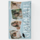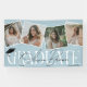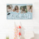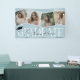 Stilvolles, modernes Abschluss-Banner. Das Design zeichnet sich durch einen staubblauen Hintergrund aus, der in jede beliebige Farbe geändert werden kann, durch eine stilvolle GRAD-Schrift, den Namen der Zeichen in der Signatur-Schrift über der Oberseite, eine trendige Collage aus Foto mit quadratischen Aufnahmen und das Klassenjahr.