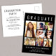 Moderne schwarze Abschluss-Ankündigung und Party Einladung-Postkarte mit "GRADUATE" in großen weißen Buchstaben, eine 7-Foto-Collage des Absolventen und ihren Namen, Jahrgang und Schule in schlicht weißer Typografie. Fügen Sie Ihre Party-Details auf der Rückseite hinzu.
